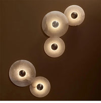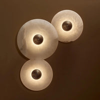 Whether mounted in your bedroom, hallway, or living room, this lamp acts as both a functional light source and an artistic wall feature. Its smooth circular form and natural stone textures create a sophisticated balance between contemporary design and organic beauty.