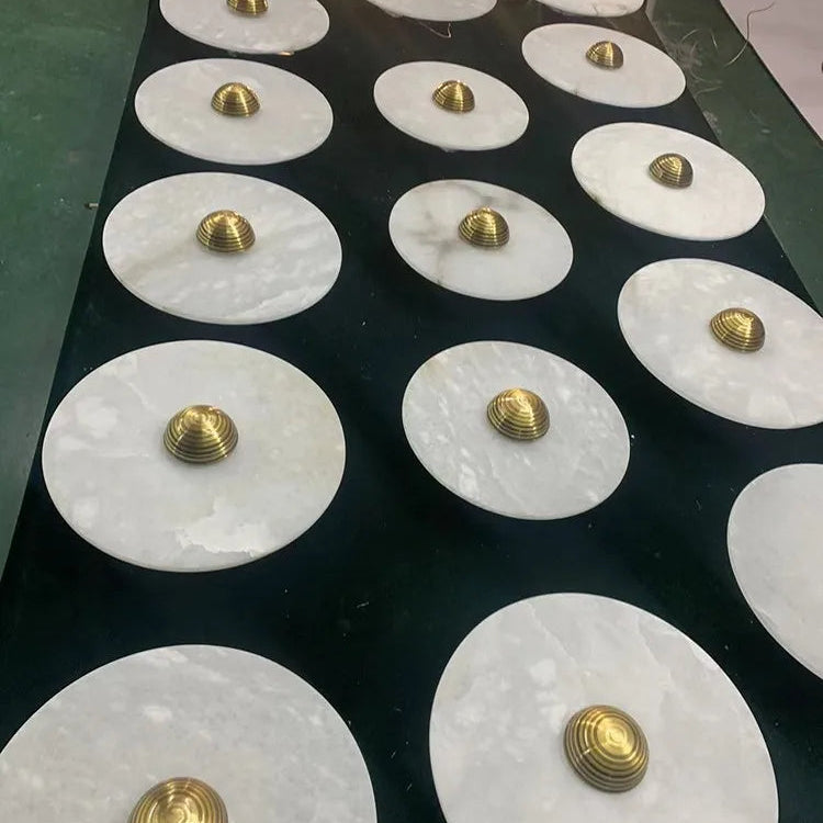 Sculpted Glow for a Refined Interior Elevate your home with the serene beauty of the Alabaster Radiance Round Wall Lamp—a stunning embodiment of modern elegance and timeless materiality. Sculpted from genuine alabaster and framed in sleek aluminum, this minimalist fixture diffuses a soft, ambient glow that transforms any space into a calming sanctuary.